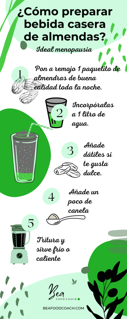 ¿Qué te parece si antes de seguir leyendo te preparas una bebida de almendras ideal para la menopausia? 🙂 Te dejo el paso a paso en la siguiente infografía. Si quieres ver cómo la preparo al final del artículo también encontrarás mi video-receta.